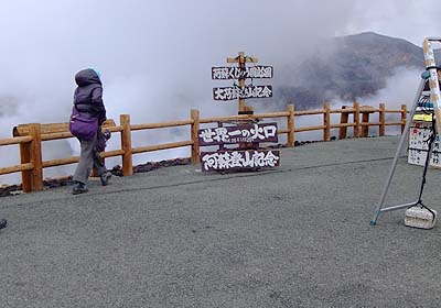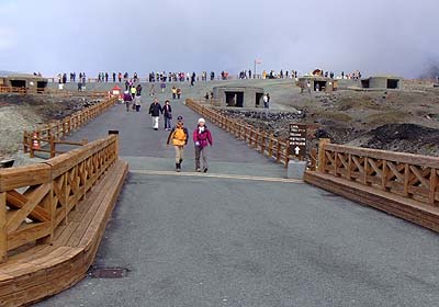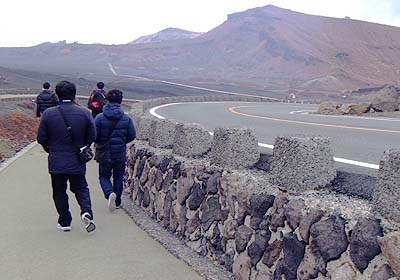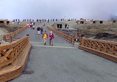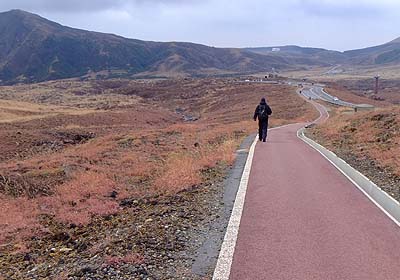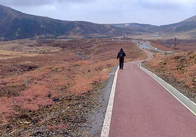 The trekking route extending toward the ridge leads to Crater East terminal of Sensui-kyo ropeway, but it was under rapair. I had not prepared to walk down that route.