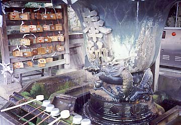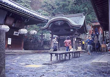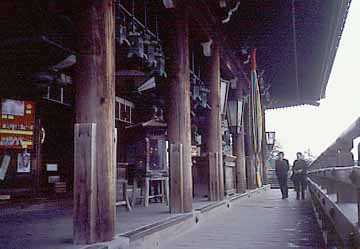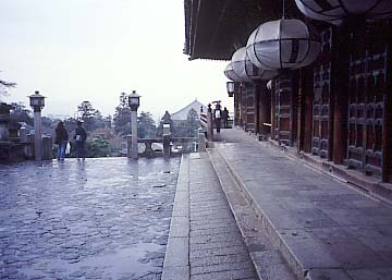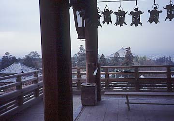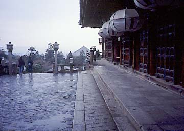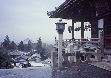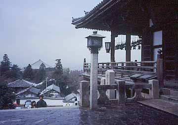 looking back at the top of the stone steps, you see "Daibutsu-den".![]() scenery of Nara from the stage of Nigatsu-dou I like the scenery of ancient capital you see Daibutsu-den is directly in front of Nigatsu-dou look at the "Chouzu-ya" (hand purifying place) another dragon is there at the ceiling of this shed again looking back at Nara in the steps to Fudou-dou Sangatsu-dou (meaning "temple of March") standing in the south of Nigatsu-dou, keeps many famous statue such as Nikko-bosatsu, Gekko-bosatsu and so on ...