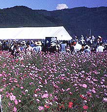 ところが、これをステレオ写真で見ると、この場所では花と花の間隔が広くて、まばらであることが簡単に分かってしまいます。望遠レンズを使って被写体の密度を強調する技法は、ステレオ写真では通用しません。