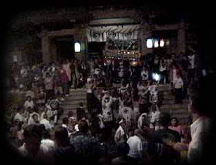 太鼓橋の上で、迎え太鼓が鳴り始めました