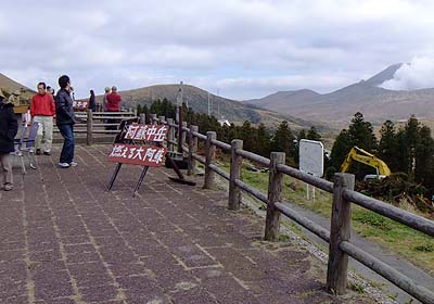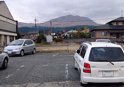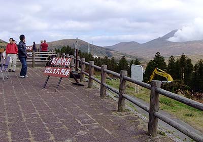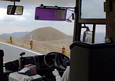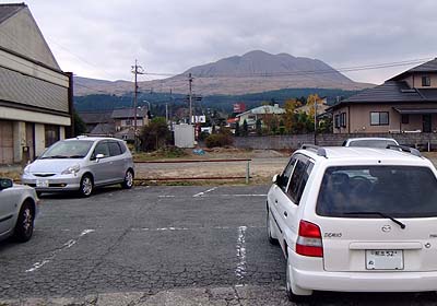 the mountain looked from the bus terminal is Mt Kijima (perhaps). Naka-dake is left behind
