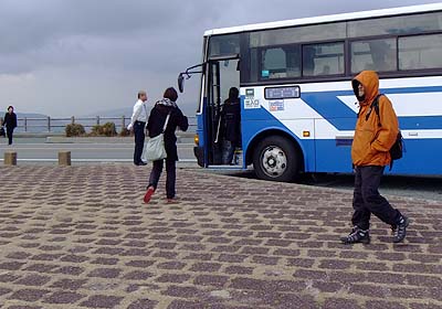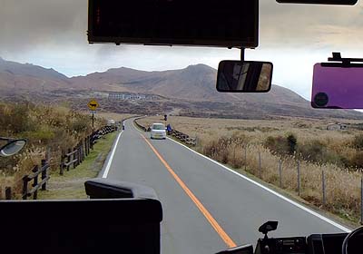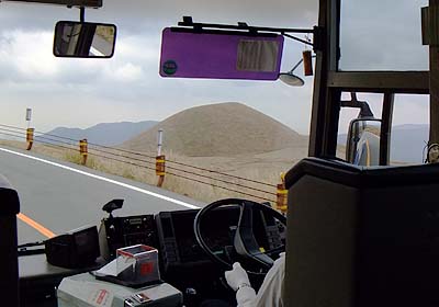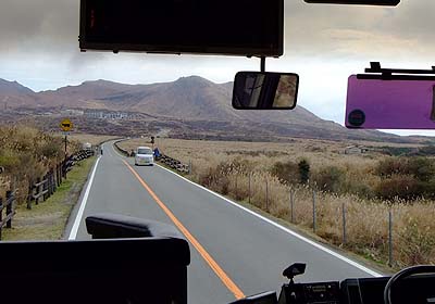 the bus move again toward Asozan-Nishi-Eki (ropeway terminal) |