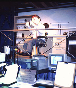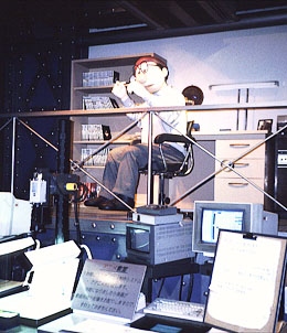 アニメ教室の奥には、手塚先生の仕事場を再現したコーナーがあって、人形が座ってます。