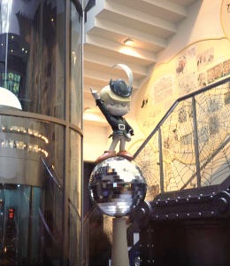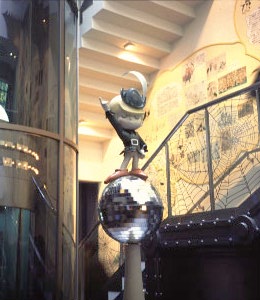 地下にあるベンチの中央では、チンクの像が回転しています。