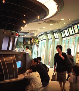 500冊の単行本が展示されています。左に見えるのは科学省型情報検索機。クイズもあります、なかなか手強い。