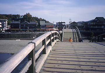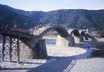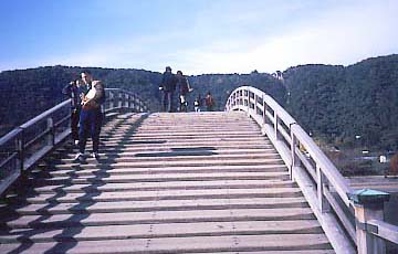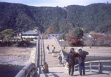 Just first step into the bridge. You can also see Iwakuni-castle tower at upper right.