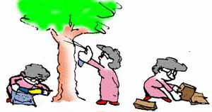 by 2025.03.23.--- シリーズ 緑恵さん、お日和はいかが #12 --- カルテ2 Bさんの場合 今日は、街路樹のカルテ作成のため野外作業があると言うので、僕も緑恵さんと一緒に出かけた。目的の通りに向かう途中で、少し高齢の女性が、樹に何かをスプレーしているのを見かけて、緑恵さんが近づいた。 「お日和はいかがですか、Bさん」 「あら、緑恵さん、ごきげんよう。そちらのお日和はいかが」 「ありがとうございます、良い日よりです。今日も樹のお手入れですか」 「そうよ、今日はね、フランス製の特別の樹皮栄養剤を使ってるの。新製品だから、あなたもまだご存じないでしょう。ロセフィン・ファルマシーが作ったとびきりの栄養剤よ。ほら、さわってごらんなさい」 そう言って緑恵さんを樹のそばに招き寄せた。緑恵さんが樹に手を当てると、Bさんは尋ねた。 「どう、この樹は喜んでるでしょ」 「え、ええ。そうですね」と、緑恵さんは、取り繕ったような笑みを浮かべて答えた。 「もちろん、そうでしょうとも。この栄養剤は簡単には手に入らないんだから」 一緒について来ていた、市役所の正人君がBさんに訊いた。 「Bさん、もしよければ、その栄養剤をちょっと見せて頂けますか」 Bさんは、彼の方を向いた。 「あら、正人君。あなたも一緒だったのね。丁度良かった、この樹の周りの敷石の件、ちゃんと上の人に言ってくれてる?」 「はい、もちろん伝えてます。いろいろ手続きが多くて、申し訳ありません、もう少しお待ちください」 「敷石なんて取っ払ったら良いと私は思うのよね。でも、雨が降ったらぬかるむからって反対する人が居るんでしょ、知ってる。それなら歩道を高床式にして地面から離したら良いじゃないの、那須高原のように。樹の根の周りをこんな風に押し固めてしまうなんて、樹を虐待してるのよ」 「ええ、おっしゃる通りです。ところで、Bさん、参考のためにこの栄養剤の写真を撮らせてもらって良いですか?」 「もちろん、構わないわ。他の人にも勧めてあげて。もっとも、値段を知ってためらう人が殆どでしょうけどね」 正人君が、「ありがとうございました」と言って栄養剤を返すと、Bさんは、大きなバッグから別の袋を取り出した。 「正人君、これも写真に撮っておきなさいよ」 そして正人君がそれをスマホで撮影すると、その袋の中身を樹の根元に撒き始めた。 「これはね、インドの偉いお坊さんが御祈祷をしてくれた貴重な肥料なのよ。これを撒いておけば病気にかからず元気に育つし、事故に合う事もなくなるのよ」 次にBさんは、バッグから水の入ったボトルを取り出し、その先にジョウロぐちを取り付けて、水を撒いた。 「それもインドから輸入した物ですか?」正人君が訊いた。 「水はわざわざインドから輸入したりしないわよ。この水はね、そのインドのお坊さんのお寺のお札を、丸一日浸けておいた物なの。ご利益が沁み込んでるのよ」 熱心に水まきを続けるBさんに、「ご苦労様です」と声をかけて、僕たちは先に進んだ。 通りを1つ過ぎたところで、僕は正人君に話しかけた。 「あのBさんの持ってる栄養剤とか、ちょっと怪しくない?」 「フランス製とかインド製とかBさんは言ってるけど、製造元は今紛争中のアフリカの某国になってる。ほぼ、まがい物だね。前から、それとなく忠告してあげてるんだけどね、信じ込んでるから周りの意見を聞き入れないんだ」 「そこは、個人の自由意志、という事か」 「肥料の中に異物が入っていないか何度か検査はしてる。禁止された除草剤や殺虫剤、PFASとかは検出されなかったけど、これからBさんのようなケースが増えると、検査システムが追い付かなくなる可能性もあるな」 「街路樹の管理を市民に委託したデメリットが見えて来たという事か」 「そういう事だね、今後の検討課題だな」 僕は緑恵さんの方を向いて尋ねた。 「緑恵さん、あの樹は幸せなんだろうか」 緑恵さんは、いつものように少し考えてから答えた。 「樹の性格はそれぞれですが、不幸では無いと思います。Bさんがあの樹のためを思って色々な事をしてくれると言うのは、あの樹には分かっているでしょうし、その色々な事で傷ついたりしていませんから」 正人君が横から言った。 「それにね、Bさんのアイデアは一考の価値があるんだ。街路樹回りの敷石をはずして車道の横は帯状の緑地にしてさ、1階は駐車場と倉庫にする。歩道は建物の2階部分に作って歩道橋で接続すれば、人が車の上に位置して太陽の光を受けられる。そんなモデル区画の計画があるんだ。まだ全く企画案だけの段階ではあるけどね」 「地下街では日の光を浴びる事が出来ないから、という事だね。でもさあ、温暖化がさらに進んだら、地上の暑さに耐えられなくなって地下街に行く人が増えるんじゃない?」 「うーん、そういうこともあるかあ。でも、街路樹の周りを緑地帯にするというアイデアは良いだろ」 「そうだね。それには賛成だね」 「でも、Bさんが