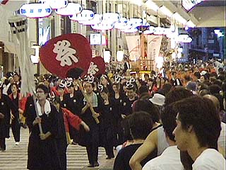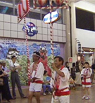 いつものことながら、初日の「宇和島ガイヤ」とくらべると、宇和島おどりはかなりおとなしい。昨日のガイヤは、夜の10時ころまで踊っていたそうですが、今日の宇和島おどりは、8時には終わりました。